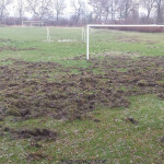Dziki poryły całą płytę treningową oraz część murawy na stadionie KS Społem. Co kilka dni przychodzą i ryją w innych częściach stadionu.