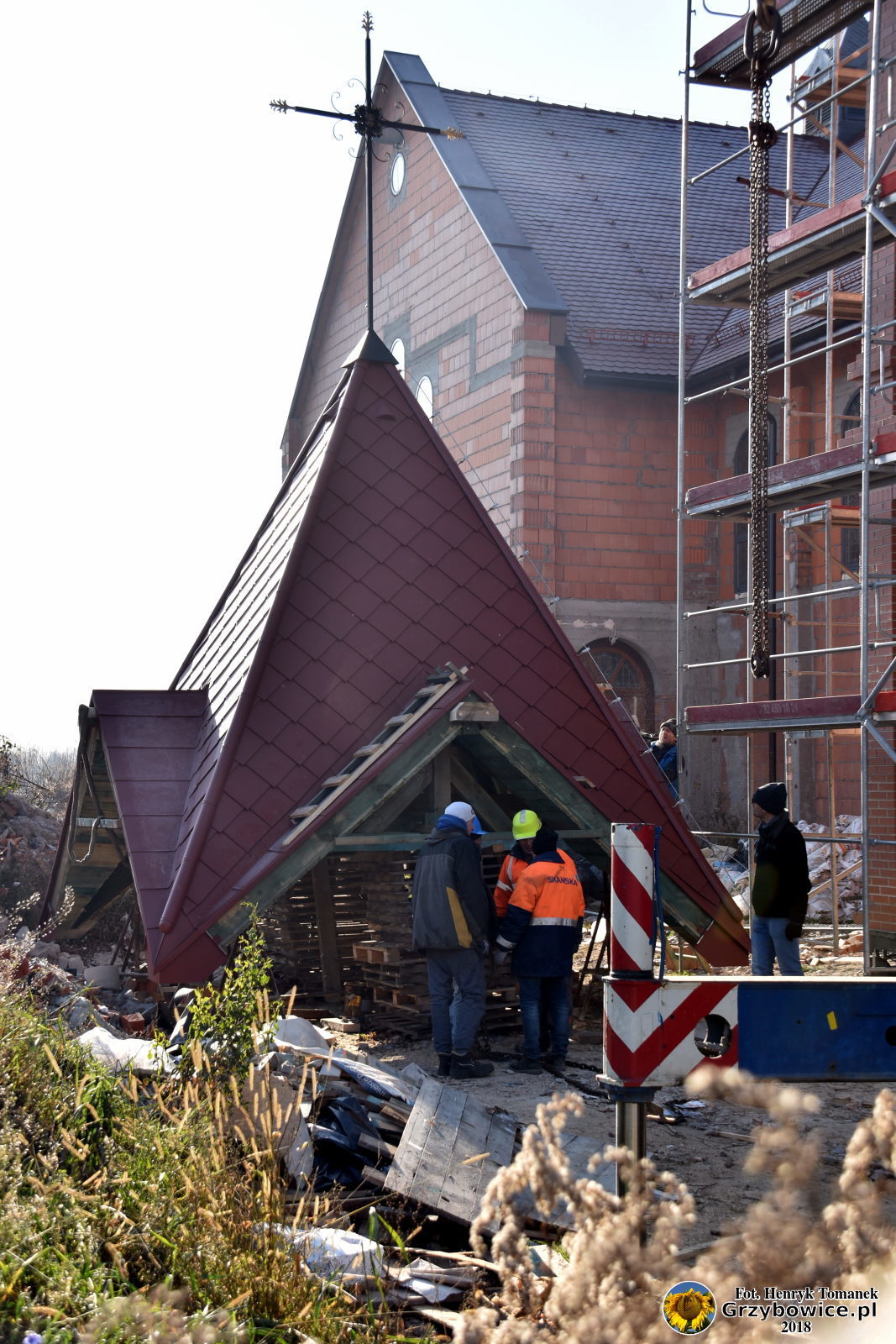 2018.12 - Montaż dachu na wierzy kościelnej oraz kapsuła czasu