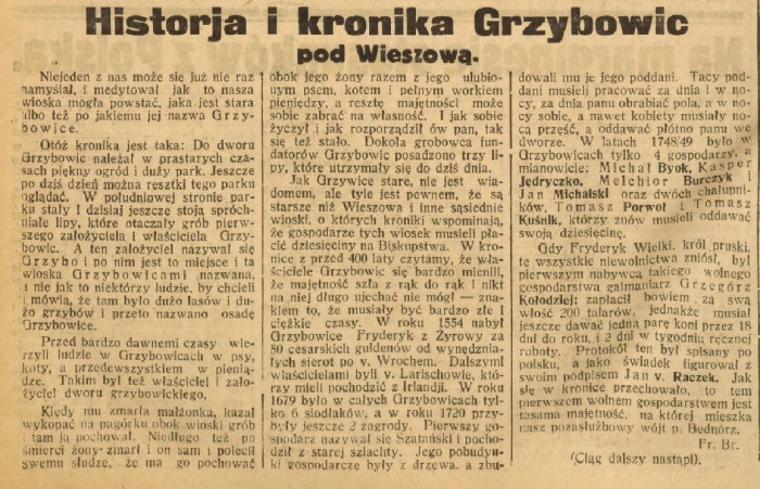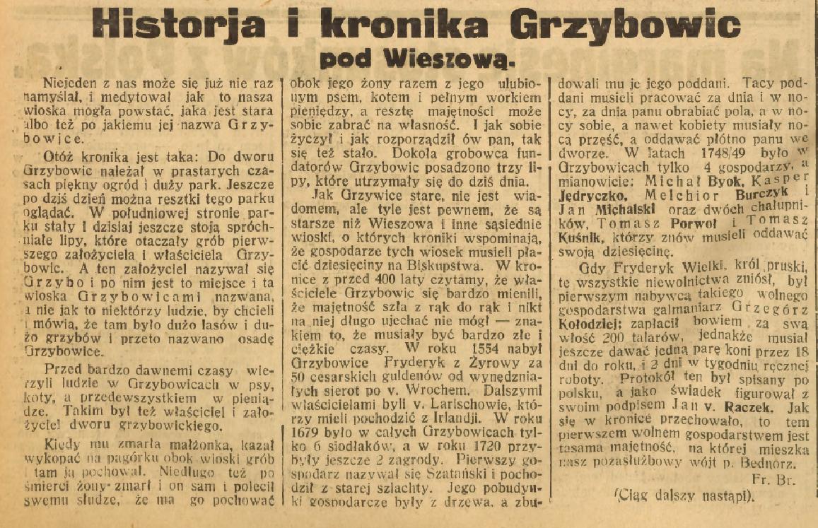 Historja i kronika grzybowic pod Wiszową